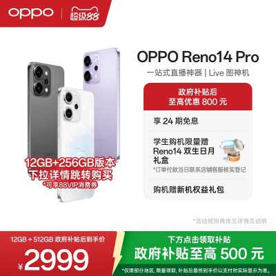 首页 > > 【政府补贴至高500元】OPPO Reno14 Pro 直播神器手机oppo官方旗舰店